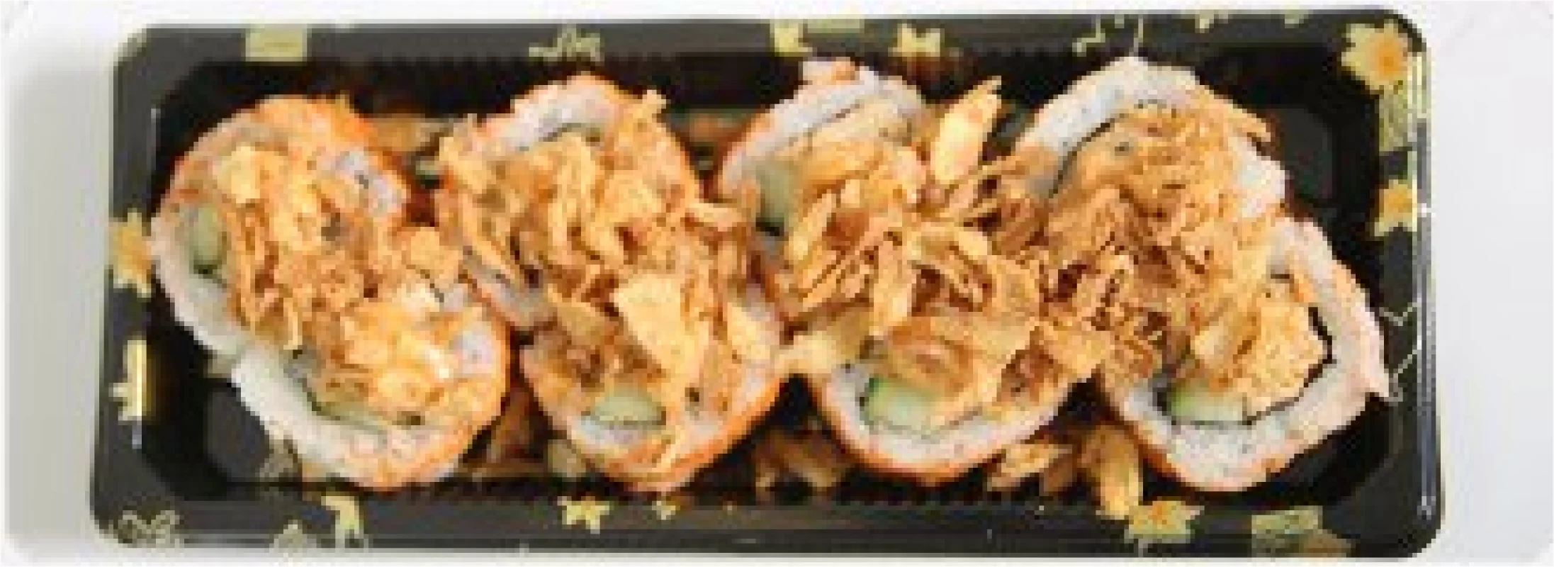 Gefrituurde garnalen, massago, japanse mayo en gebakken uitjes0